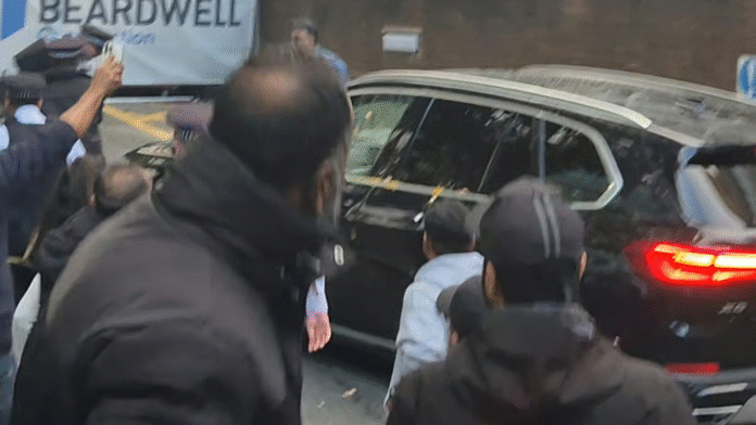 প্রত্যক্ষদর্শীরা জানান, বাংলাদেশ হাইকমিশনের একটি কালো রঙের বিএমডব্লিউ গাড়ি ক্যাম্পাস থেকে বের হওয়ার সময় আওয়ামী লীগের নেতাকর্মীরা গাড়ির সামনে শুয়ে পড়ার চেষ্টা করেন এবং একপর্যায়ে ডিম নিক্ষেপ করেন। তবে পুলিশ দ্রুত হস্তক্ষেপ করে পরিস্থিতি নিয়ন্ত্রণে আনে এবং গাড়িটি নিরাপদে সরিয়ে নেয়।