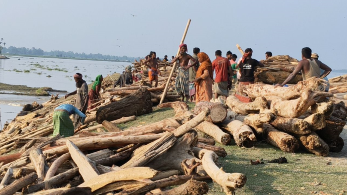 স্থানীয়রা জানান, ভেসে আসা এসব গাছের গুঁড়ির জ্বালানি হিসেবে বাজারমূল্য কয়েক কোটি টাকা।