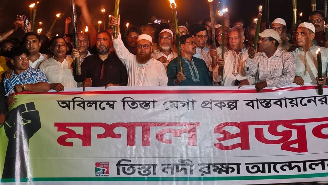 তিস্তা মহাপরিকল্পনার দ্রুত বাস্তবায়নের দাবিতে কুড়িগ্রামের রাজারহাট ও উলিপুরে মশাল প্রজ্জ্বলন কর্মসূচি অনুষ্ঠিত হয়েছে।