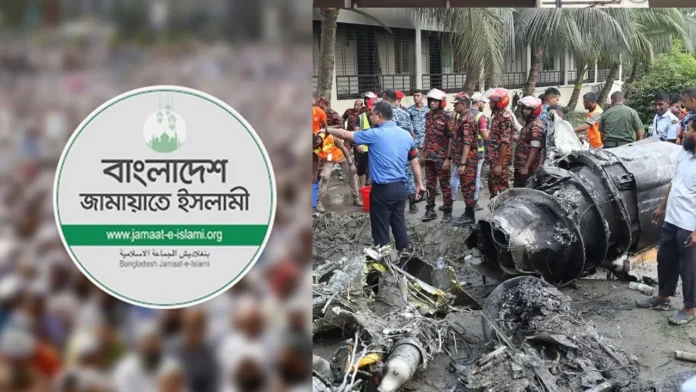 রাজধানীর উত্তরায় বিমান বিধ্বস্তে আহতদের জন্য চিকিৎসা সহায়তার ঘোষণা দিয়েছে বাংলাদেশ জামায়াতে ইসলামী। দলটির পক্ষ থেকে ৫০ লাখ টাকার চিকিৎসা সহায়তার ঘোষণা দেওয়া হয়েছে।